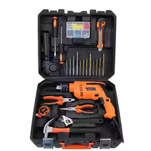 Various portable household combination drill toolbox, electrician's hardware tool set, impact drill set, automotive repair tool.